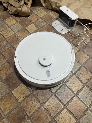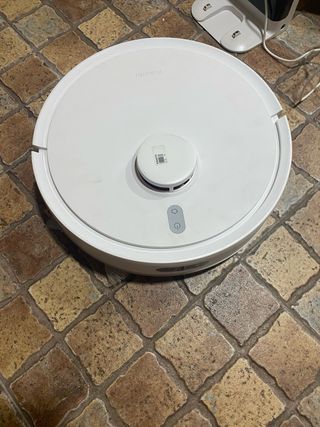 Robot aspirador Xiaomi Vacuum, ideal para mantener tu hogar limpio. - Diseño redondo y compacto. - Color blanco. - Incluye base de carga.
