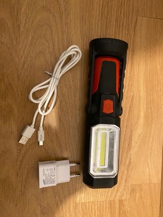 Linterna de trabajo recargable con múltiples funciones. - Imán integrado para fijación. - Gancho para colgar. - Luz LED COB.