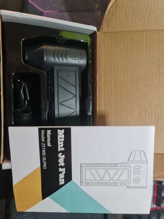 Mini Jet Fan, modelo ZY7400-SE/PRO. Incluye manual y cable de carga. - Diseño compacto y portátil. - Tres velocidades de soplado. - Incluye linterna LED - Incluye accesorios de soplado.
