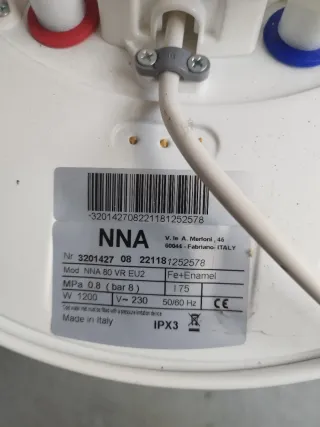 Calentador de agua eléctrico Ariston de 80 litros funcionando, lo vendo porque pase a uno con bomba de calor - Modelo: NNA 80 VR EU2 - Capacidad: 80 litros - Fabricado en Italia - Protección IPX3