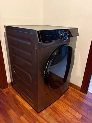 Secadora de ropa Cecotec en color gris. Diseño moderno y panel de control digital. - Puerta frontal con acabado en negro. - Compartimento inferior con rejilla de ventilación. - Poco uso. - 10k de ropa - A+++ muy económica - No hay necesidad de ponerla junto a una ventana ya que tiene deposito interno . - Precio negociable