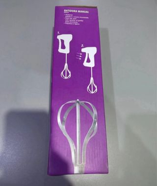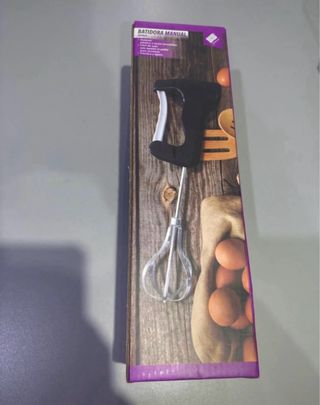 Batidora manual para uso en la cocina. Su diseño ergonómico facilita su manejo. - Mango de agarre cómodo. - Varillas de acero inoxidable.