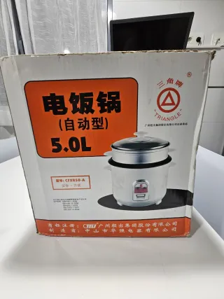 Olla arrocera eléctrica marca Triangle, modelo CFXB50-A, con capacidad de 5.0 litros. - Diseño automático. - Incluye vaporera. - Fabricada por Zhongshan Huaqiang Electric Appliance Co., Ltd.