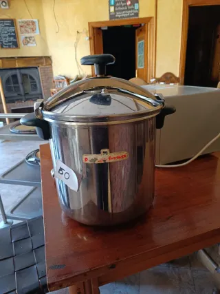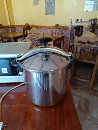 Olla a presión de gran capacidad, ideal para uso industrial o profesional.solo.se uso una vez - Capacidad de 15 litros. - Fabricada en aluminio resistente.