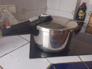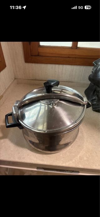 Olla a presión de la marca Fagor, ideal para cocinar de forma rápida y eficiente. - Fabricada en acero inoxidable. - Asa lateral y mango ergonómico para un agarre seguro. - Tapa con cierre hermético (pienso que se la goma se deberá cambiar ...del poco uso parece que se ha resecado)