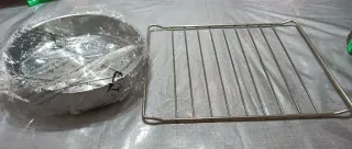 Set de cesta de acero inoxidable para cocinar al vapor, nueva, de 20 cm y rejilla para mini horno - Vaporera redonda, se puede usar en olla normal o de presión - Rejilla metálica, usada y bien conservada de 29,4 cm x 24 cm. De horno pequeño Descripción fotos