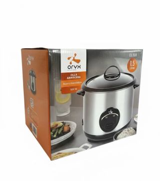 Olla arrocera de la marca Oryx con acabado en acero inoxidable. - Capacidad de 1.5 litros. - Potencia de 500W.