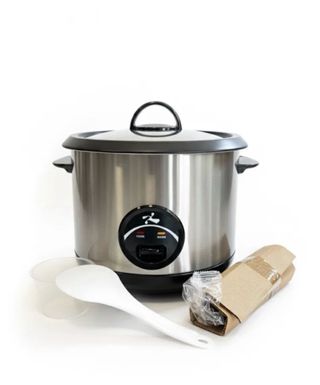 Olla arrocera eléctrica de acero inoxidable, ideal para preparar arroz y otros alimentos. - Material: Acero inoxidable. - Diseño moderno y funcional. - Control de temperatura ajustable.