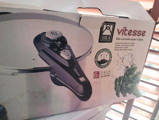 Olla a presión de la marca Rapid-Express. Fabricada en acero inoxidable. - Asa de baquelita negra. - Válvula de seguridad dorada. se me ha roto la válvula no sé si funcionará