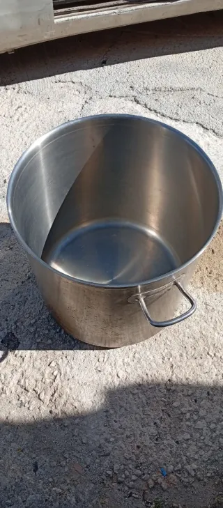 Olla grande de acero inoxidable resistente, ideal para cocinar en cantidad: caldos, cocidos, sopas, conservas o para uso en eventos y cocina profesional. 📏 Medidas aproximadas: • Diámetro interior: 24cm • Altura útil: 21cm • Capacidad: 9L aprox 🔹 Estado: usada, en buen estado general. Presenta marcas normales de uso, sin golpes ni deformaciones. 🔹 Asas firmes y cómodas. 🔹 Interior limpio y funcional. Perfecta tanto para uso doméstico como cocina industrial o restauración. Entrega en mano o envío a cargo del comprador.