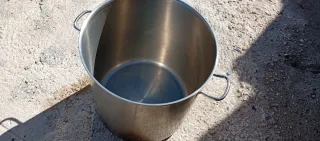 Olla de acero inoxidable para cocinas industriales. Presenta marcas de uso en la parte inferior. - Ideal para uso intensivo. - Resistente y duradera. - Tengo 2 en 15€cada una