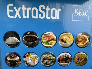 Olla arrocera multifuncional de la marca ExtraStar, modelo JS-E50C. Cuenta con una capacidad de 5.0 L y 900W de potencia. - 10 programas de cocción. - Interior antiadherente de 1.50 mm. - Temporizador preestablecido hasta 24 horas. - Panel de control digital táctil. - Incluye medidor, cuchara, vaporera y cable de alimentación.