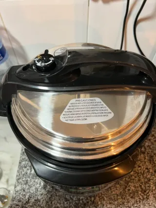 Olla programable Tefal en excelente estado, casi nueva y aún en garantía. Comprada en enero por 100 euros en el corte ingies . vendo porque me han regalado otra . - Diseño moderno en acero inoxidable y negro. - Panel de control digital con múltiples funciones. - Incluye accesorios para diversas preparaciones.