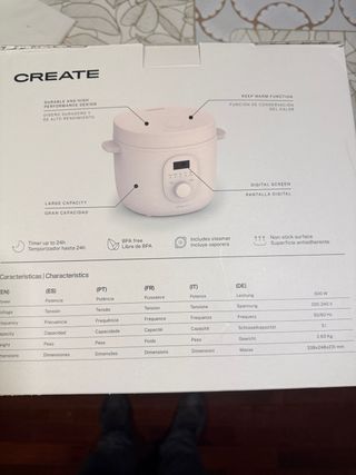 Olla arrocera eléctrica CREATE/RICE COOKER/Arrocera eléctrica multifunción 2L blanco roto/Programable hasta 24h, falta la vaporera de ahí su precio función de mantener el calor, 400W "olla arrocera create". - Recipiente antiadherente. nuevo totalmente nunca usado ver sin compromiso