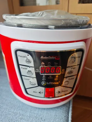 Olla programable Master Cooker en color rojo. Incluye recetario. Completamente nueva. Nunca utilizada y con precintos - Modelo Master Cooker Red. - Recetario de Sergio Fernández.