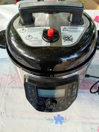 Olla programable Cooker Matic en perfecto estado. - Modelo Cooker Matic. - Funciones: arroz, sopa, postre, pasta, guiso, yogurt, lento, freír, horno, vapor, plancha. - Incluye función de recalentar y temporizador. 30cm de alto 84cm de diametro