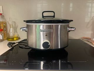 Olla de cocina lenta Crockpot en color beige. Perfecta para preparar comidas deliciosas. Capacidad de 5L - Diseño elegante y funcional. - Asa negra en la tapa. - Panel de control digital. Usada muy poco.