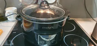 Olla de cocción lenta Crockpot de 3.5 a 4 litros. perfecto funcionamiento con marcas de uso. vendo porque me regalaron una más grande con temporizador incorporado. Regalo complemento de programador - temporizador marca Garza - Color plateado. - Tapa de cristal con asa negra. - Control de temperatura. - Diseño moderno y funcional.