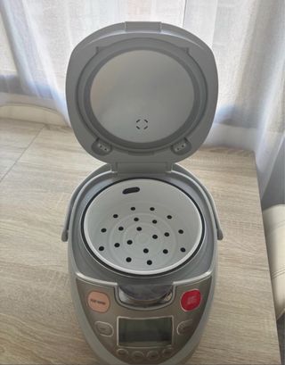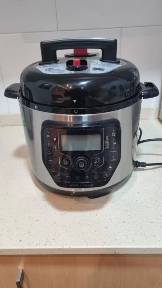 Facilita y acelera la preparación diaria de comidas. Cuenta con funciones de cocción a alta presión, cocción lenta, vapor, horneado y salteado. Dispone de una amplia variedad de programas automáticos: arroz, sopas, guisos, carne, pescado, verduras y comida para bebés. Fácil de limpiar, con recipiente interior extraíble. Ideal para familias ocupadas y para una alimentación saludable. Precio: 75 € Precio de compra: 140 € (comprado en El Corte Inglés) Estado: como nuevo