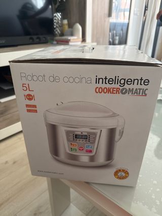 EN SU CAJA ORIGINAL. NUNCA USADO. Robot de cocina inteligente Cookermatic de 5L, prácticamente nuevo. Cocina tus platos de forma sencilla a cualquier hora. - 14 menús programados. - Recetario con más de 100 recetas. - Función autolimpieza. - Mínimo consumo: solo 900 watios. - 12 sistemas de seguridad.