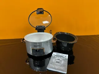 Olla de cocción lenta Bestron prácticamente nueva. - Para la cocción lenta y a baja temperatura de carnes, verduras, guisos, curry, gulasch, pollo, chile, sopas, etc… - Con bandeja interior de cerámica y tapa de vidrio - Fácil de limpiar: La tapa y el interior de la olla son aptos para lavavajillas - Bajo consumo: Solo 180 vatios. - Mangos resistentes al calor - 4 posiciones: Apagado, bajo, alto, mantener caliente - Capacidad 3,5l: 3-4 personas