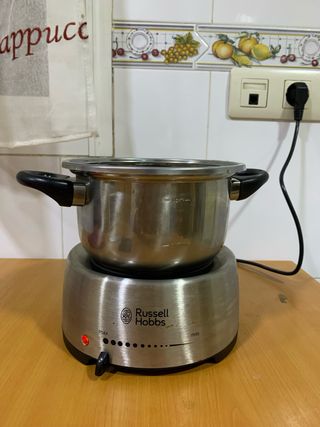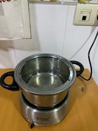 Olla eléctrica Russell Hobbs de acero inoxidable. - Funciona perfectamente. - Para viajes. - Control de temperatura con selector. - Diseño moderno y compacto.