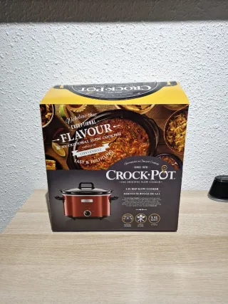 Olla de cocción lenta Crock Pot de 3.5 litros en color rojo. - Capacidad de 3.5L. - Diseño compacto y elegante. - Ideal para preparar comidas caseras. - Peso 5KG - A estrenar - Incluye manual y corchos originales