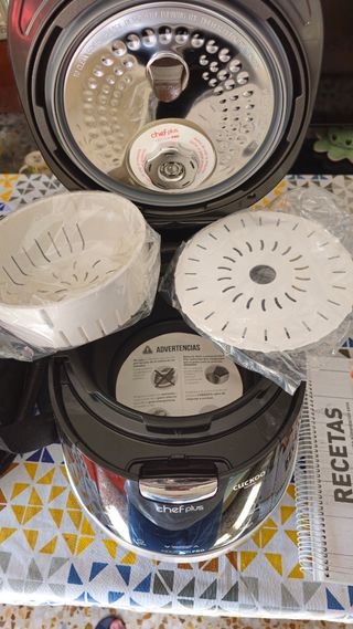 Olla multifunción en su embalaje original. Lista para estrenar. - Diseño moderno y funcional. - Incluye accesorios.