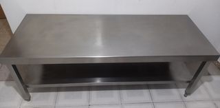 Mesa de acero inoxidable con copete de 4,50cm y patas regulables en perfecto estado