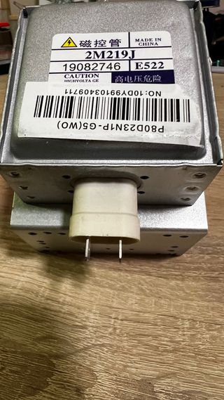Se vende magnetrón 2M219J en buen estado. Ideal para reparar tu horno microondas. - Modelo: 2M219J, 19082746, E522 - Fabricado en China - Incluye el magnetrón y sus accesorios que se ven en las fotos.