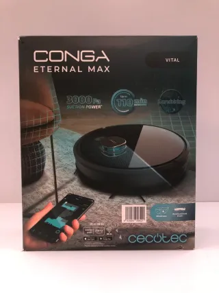 Aspirador Conga Eternal Max de Cecotec, a estrenar con todos los accesorios. - 3000 Pa de potencia de succión. - Hasta 110 min de autonomía. - Función friegasuelos. - Compatible con Alexa y Google Assistant. - Mapeo de habitaciones. Precio no negociable.