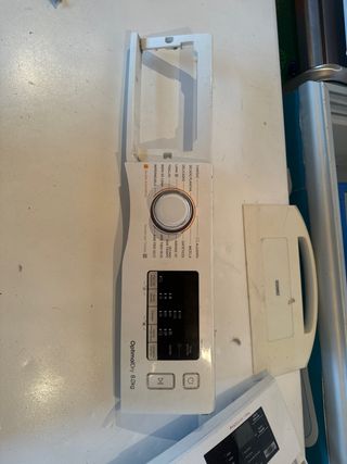 Conjunto de botones y componentes para lavadora. - Incluye panel de botones. - Componentes de plástico blanco y gris. - Un indicador luminoso con varios colores.