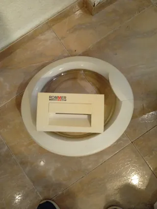 Tapa de lavadora en color blanco y con cristal. - Marco exterior de plástico blanco. - Puerta de cristal transparente.