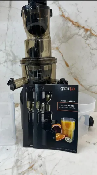 Licuadora de prensado en frío para hacer zumos y batidos de la marca Guindilux. Tiene 8 programas distintos y un recetario para hacer distintos tipos de zumos y batidos. Libre de BPA y se puede lavar en el lavavajillas sin problema. Tiene un motor de 200 W Vendo por no usar. Se ha usado un mes. Está en su caja con embalaje original.