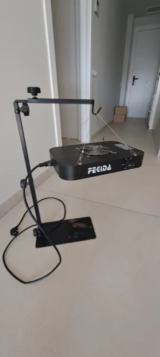 Lámpara LED de la marca FECIDA, diseñada para el cultivo de plantas en interiores. Cuenta con un ventilador integrado para la disipación del calor. 130Watt 1200 Lumen Regulable - Color negro. - Soporte ajustable. - Cable de alimentación incluido.
