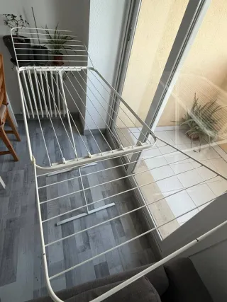 Tendedero plegable de la marca Ikea en color blanco. Ideal para secar la ropa en interiores o exteriores. - Estructura metálica resistente. - Diseño plegable para fácil almacenamiento. - Amplia superficie de secado.