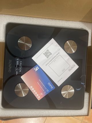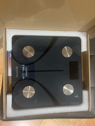 Báscula de baño digital RENPHO con superficie de cristal. - Diseño moderno y elegante. - Plataforma de vidrio templado. - Indicador de batería baja.