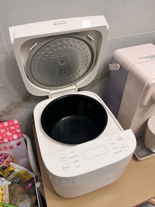 Arrocera eléctrica Xiaomi en color blanco. Cuenta con panel de control táctil y conectividad Wi-Fi. - Funciones: Arroz, Arroz Integral, Congee, Sopa, Vapor, Recalentar, Mantener Caliente. - Temporizador programable. - Botón de inicio/pausa y selección.