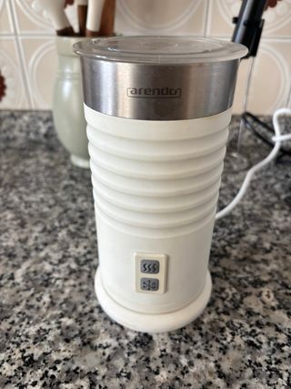 Espumador de leche de la marca Arendo. Ideal para preparar bebidas calientes o frías. - Diseño moderno y compacto. - Acabado en color blanco. - Tapa transparente.