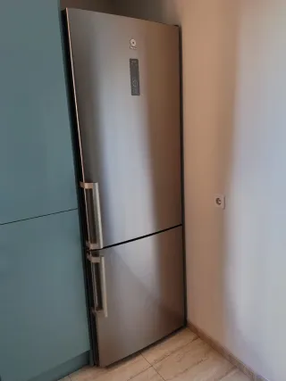 Frigorífico combi Balay en acabado inoxidable con tecnología NoFrost. Fecha de disponibilidad: a finales de marzo por reforma. El comprador debe encargarse de recogerlo en mi domicilio. Peso: 84 kg. - Modelo: 3KF6962XE - Medidas: 203x70x67 cm - Acabado: Acero inoxidable - Tecnología: NoFrost