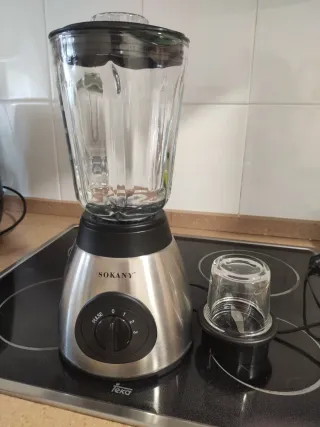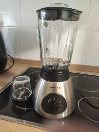 Batidora de vaso SOKANY con poco uso. - Jarra de cristal. - Base de acero inoxidable. - Incluye vaso pequeño para moler.