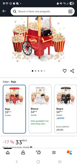 Máquina Palomitas Retro 850W ideal regalo reyes