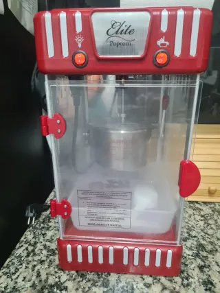 Máquina de palomitas de la marca Elite, con un diseño retro en color rojo. - Interruptores de encendido. - Ventana transparente para ver el .es usado 4 veces