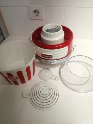Palomitero Cecotec sin estrenar, listo para usar. - Modelo: Fun&Taste P'corn Lotus. - Color: Rojo y transparente. - Tiene: 4 recipientes extraible -Manual: de instrucciones -Peso : 1,33kilogramos