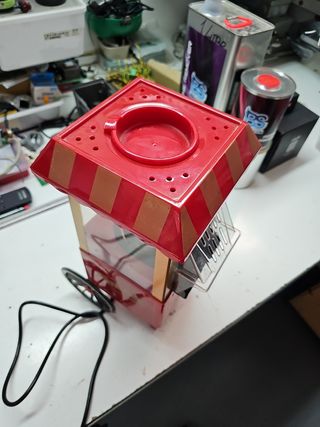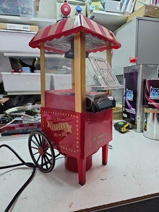 Palomitero electrico con diseño retro. Funciona perfectamente, aunque tambien podria servir como decoracion. Nunca se ha usado. Sin caja original.