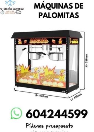 🍿 ¡Prepara Palomitas de Maíz Perfectas con Nuestras Máquinas Especializadas! 🍿 📞 Llama al 604244599 para más información. 🚚 Enviamos a toda España. 🎉 Dale un toque festivo a tu evento con nuestras máquinas de palomitas. 🔥 Disfruta del auténtico sabor del cine en la comodidad de tu hogar. 💼 Ideal para fiestas, cumpleaños, y eventos corporativos. 💪 Equipos robustos y de alta calidad para un rendimiento óptimo. 🌽 Utiliza maíz de primera calidad para obtener palomitas deliciosas. 👌 Fácil de usar y limpiar, perfecto para cualquier ocasión. 👍 Atrévete a sorprender a tus invitados con palomitas frescas y crujientes.