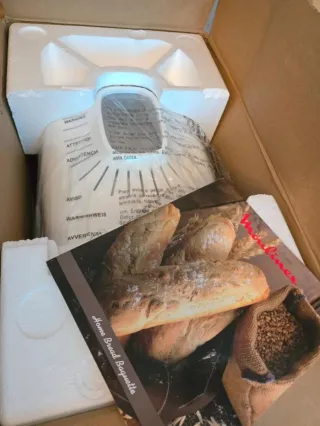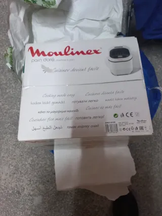 Usasa somo una vez. Ls caja parece vieja pero es solo polvo. Esta nueva Panificadora Moulinex para hacer pan casero y baguettes crujientes. - Permite hacer pan fresco de hasta 1.5 kg. - Incluye 16 programas automáticos. - Tres programas específicos para baguettes.