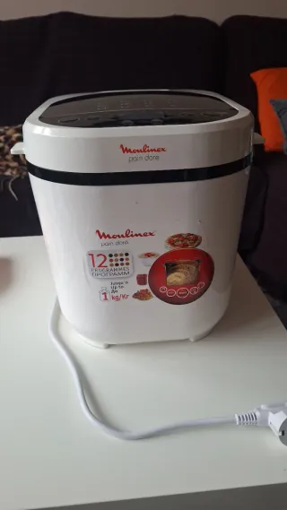 Panificadora Moulinex en buen estado. - Programas variados para diferentes tipos de pan. - Permite seleccionar el peso del pan. - Pantalla digital. - Botón de inicio/parada.