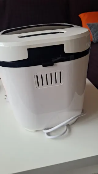 Panificadora Moulinex. Se ha usado 5 o 6 veces. Funciona perfectamente. El diagrama de la tapa se ha borrado parcialmente, y el cesto interior tiene algunas marcas marrones por la temperatura