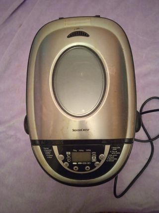 Panificadora lidl marca silvercrest en perfecto estado, usada dos veces. El único desperfecto (se ve en las fotos) es que los números de los programas se han borrado un poco, pero aparecen también en el manual de uso, por lo que no es ningún problema para usarla. Muy cuidada. Incluye la panificadora, el manual de uso y su libro de recetas